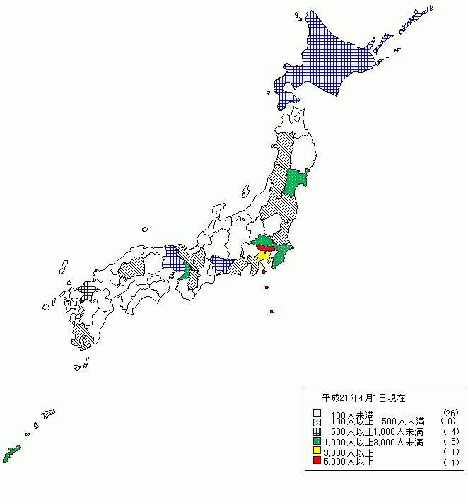 | 第 | 12 | 位 | 鹿児島県 | 443 | 人 | 第 | 20 | 位 | 奈良県 | 115 | 人 |