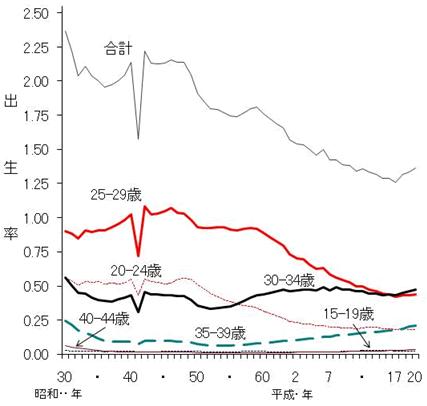 図2 合計特殊出生率の年次推移(年齢階級別内訳)zu02.jpg